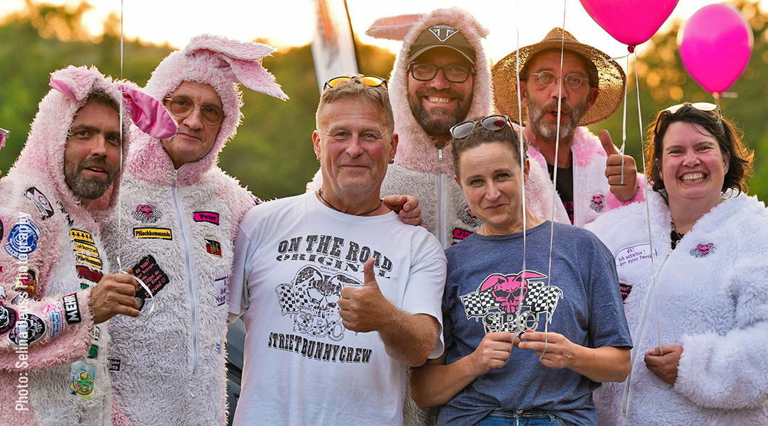 Der gemeinnützige Verein Streetbunnycrew bietet eine Helm-Garderobe an. Besucher können dort Helme und Jacken gegen eine Spende ablegen und aufbewahren. Bitte beachtet: Die Kapazitäten sind begrenz! Die Helm-Garderobe befindet sich auf der Händlermeile, vom westlichen Eingang herkommend in der Mitte zwischen Eingang Veranstaltungsgelände und Veranstaltungszentrum. Ihr erkennt die „Hasen“ schon von Weitem an deren pinken Plüschkostümen.